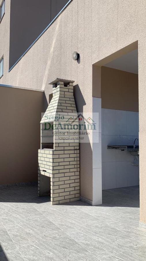 Condomínio possui área de lazer com churrasqueira e elevador.